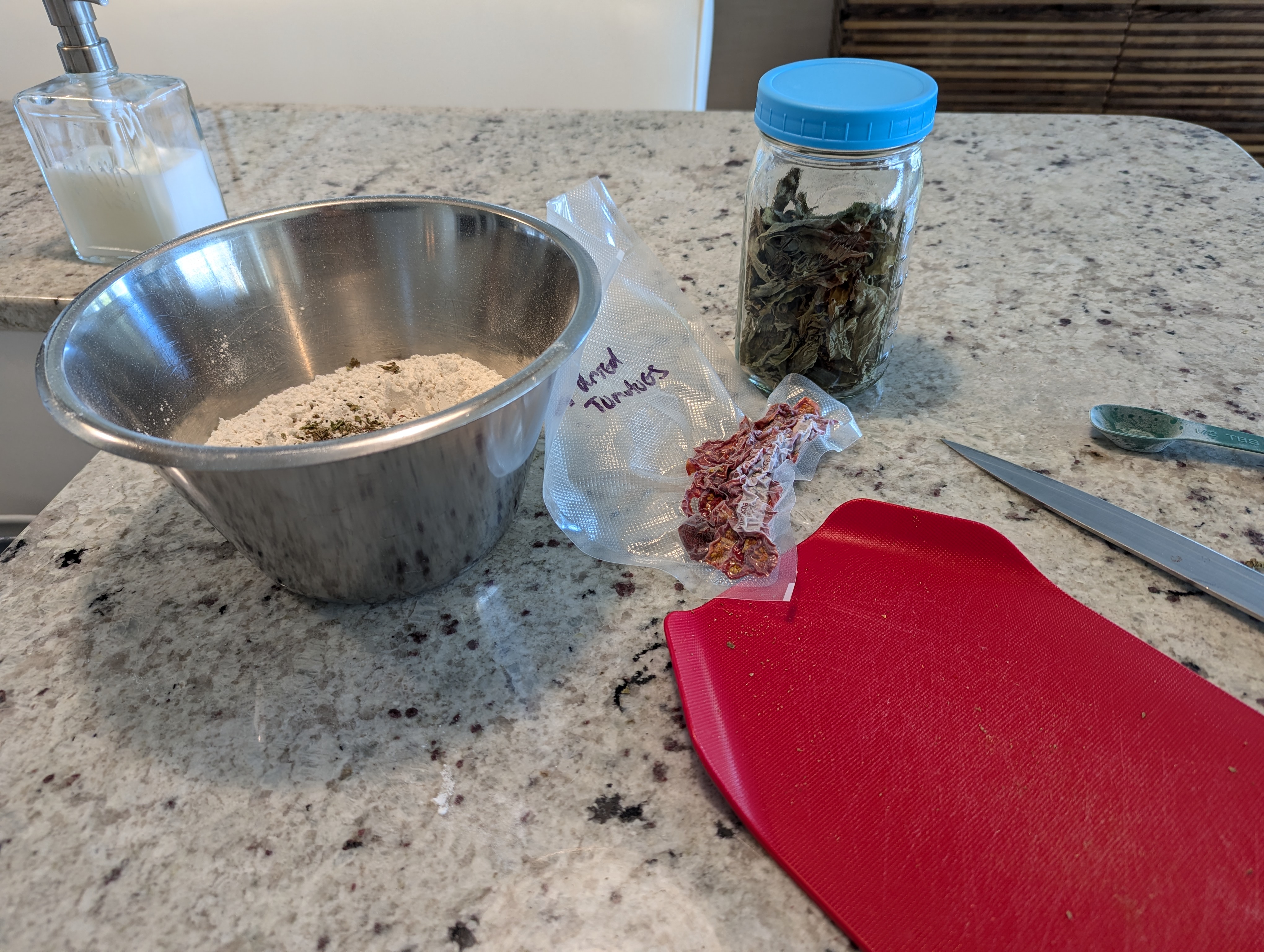 - 1/4 cup dried and chopped sun-dried tomatoes (from Freighter View Farms)
